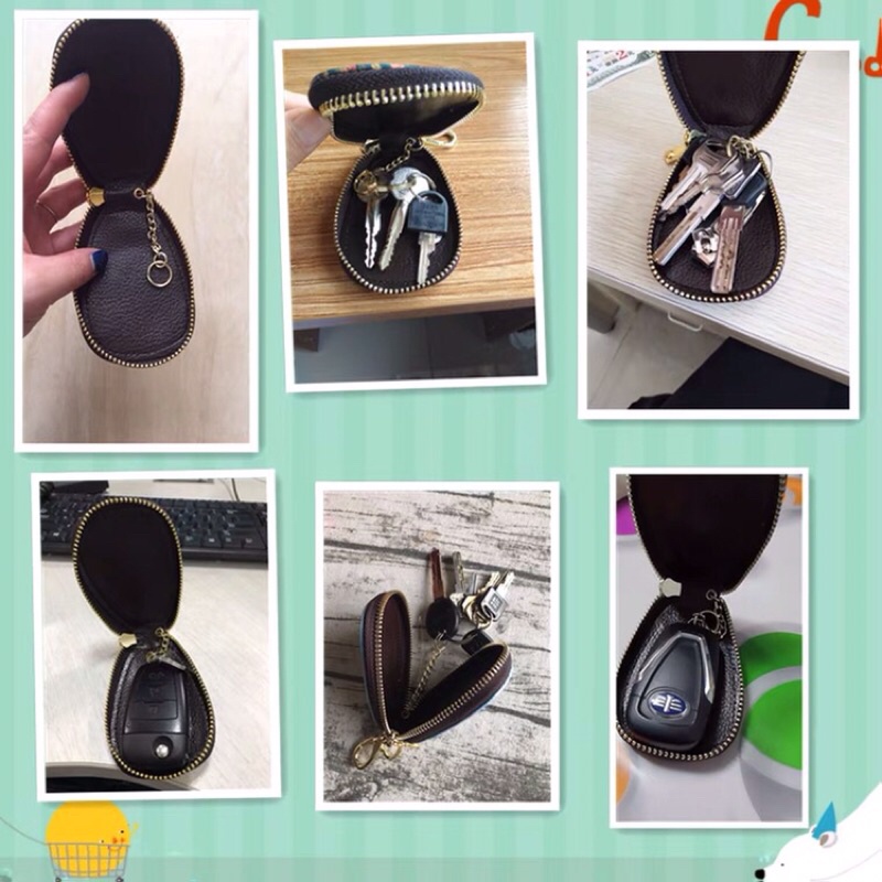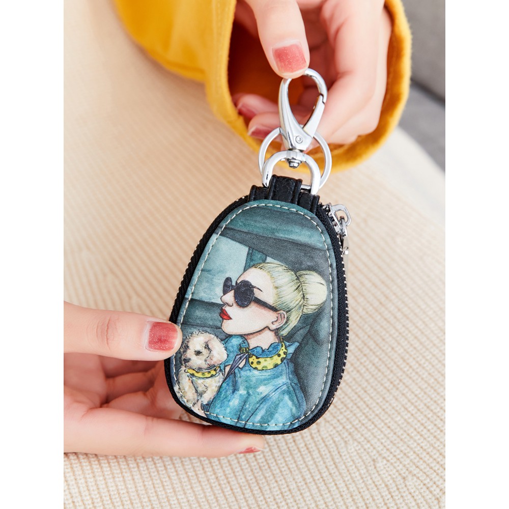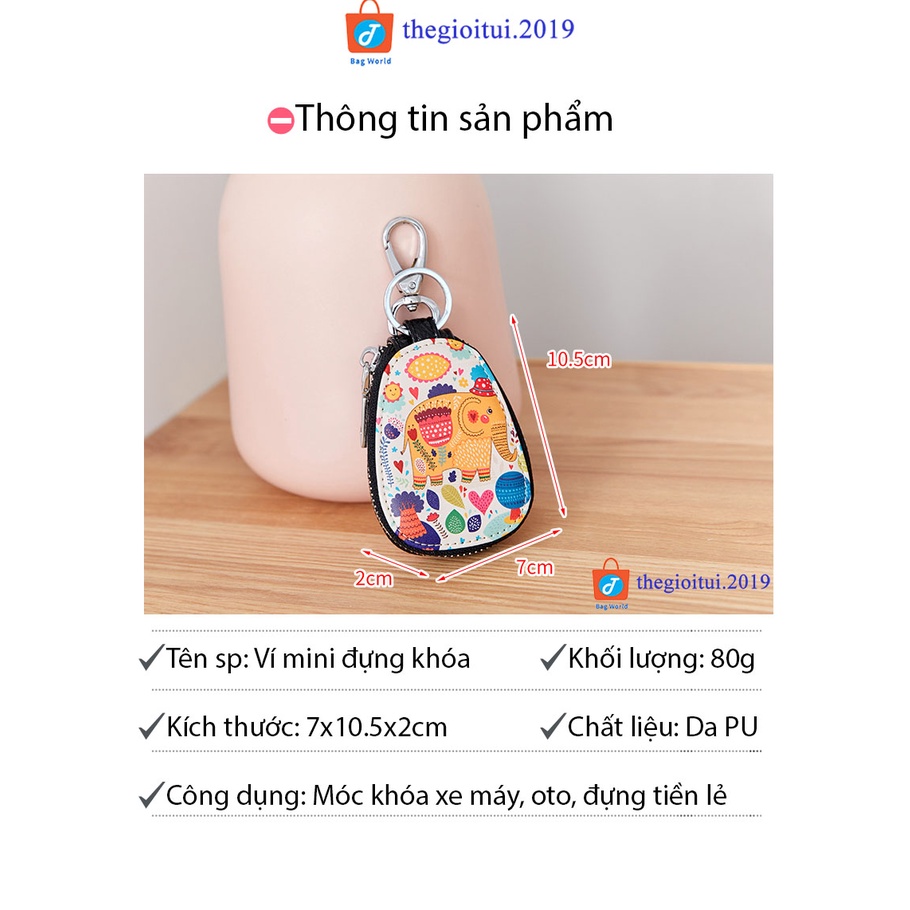 Ví mini đựng chìa khóa, móc chìa khóa họa tiết bằng da nhỏ gọn tiện dụng