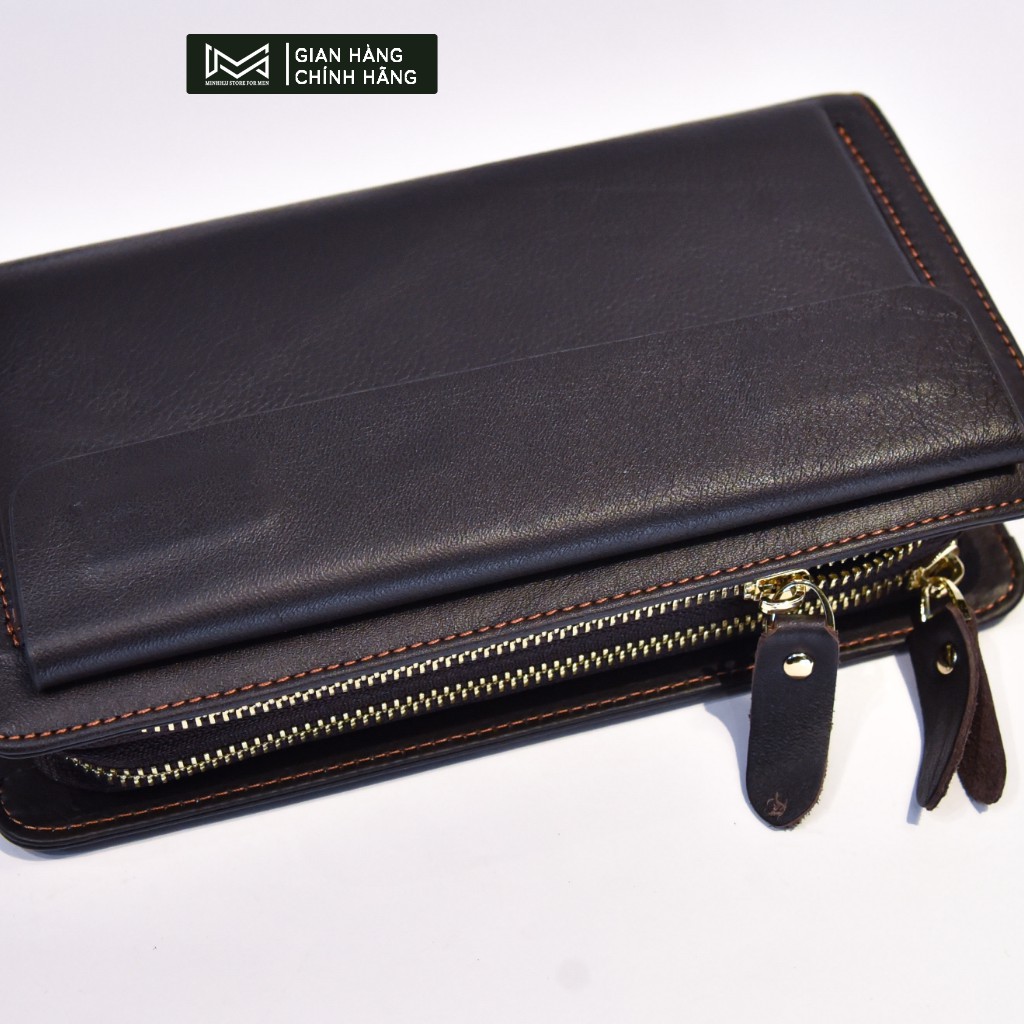 Ví Nam Cầm Tay Da Bò Cao Cấp MOZADO Dáng Ngang 2 Ngăn Kích Thước 22x13cm VD190032