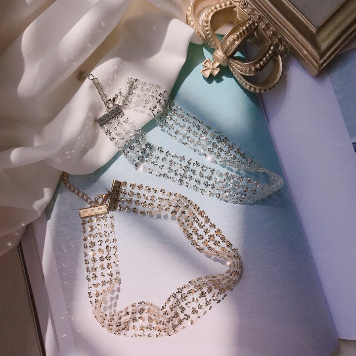 Vòng cổ choker kim tuyến lấp lánh màu bạc vàng dành cho nữ