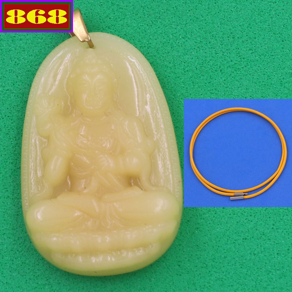 Vòng cổ mặt phật dây cao su vàng Đại thế chí đá vàng 4.3 cm - Hộ mệnh tuổi Ngọ