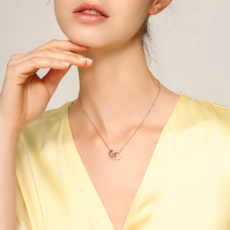 Vòng cổ thép titan mạ màu vàng hồng 18k đính đá khắc số La Mã thời trang