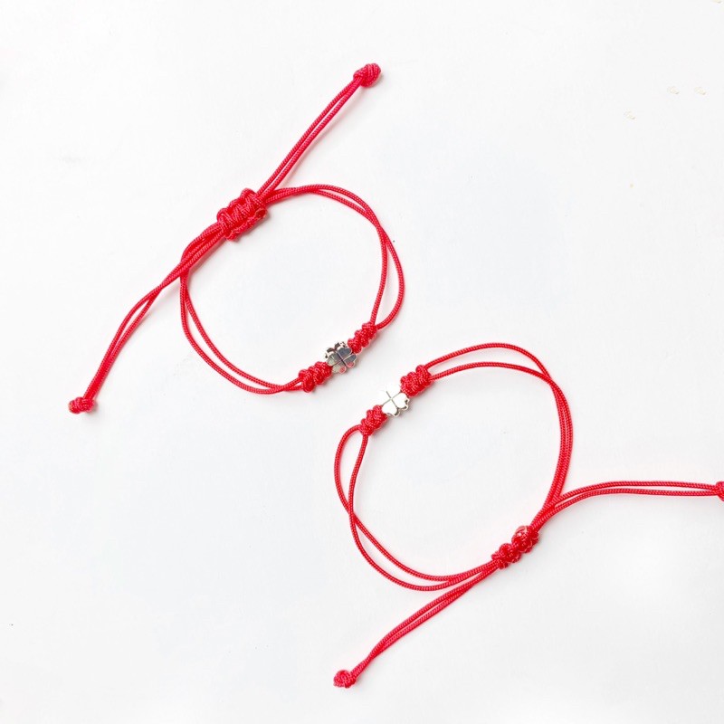 Vòng tay chỉ đỏ charm bạc 925 cỏ 4 lá - KAIA