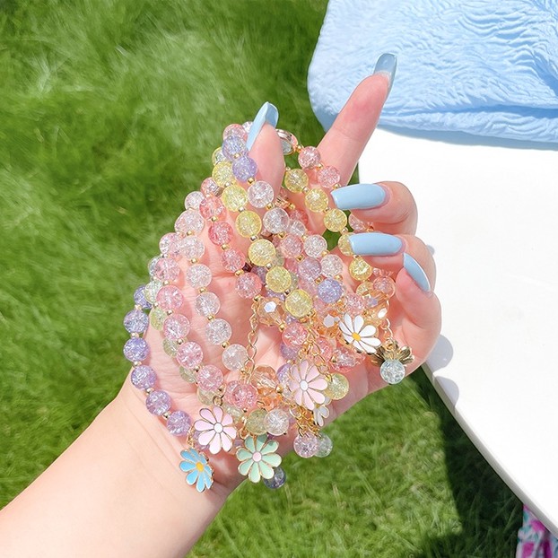Vòng tay đính hạt pha lê nhân tạo hình hoa cúc nhỏ phong cách Hàn Quốc