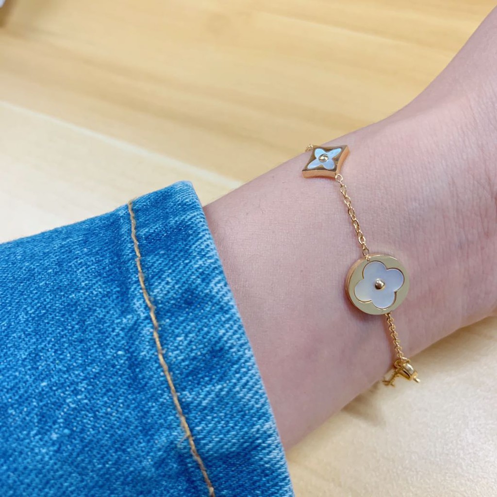 Vòng đeo tay chất liệu thép titan màu vàng hồng chống nước không phai màu họa tiết cỏ bốn lá phong cách âu mỹ