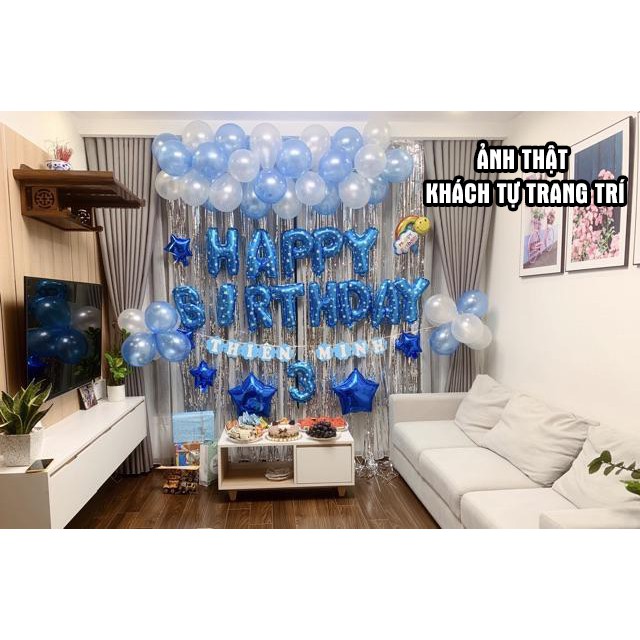 [XANH TRAI-HỒNG GÁI] Combo Trang Trí Tiệc Sinh Nhật 2 Rèm Kim Tuyến, Bóng Chữ Happy Birthday và 50 bóng tròn