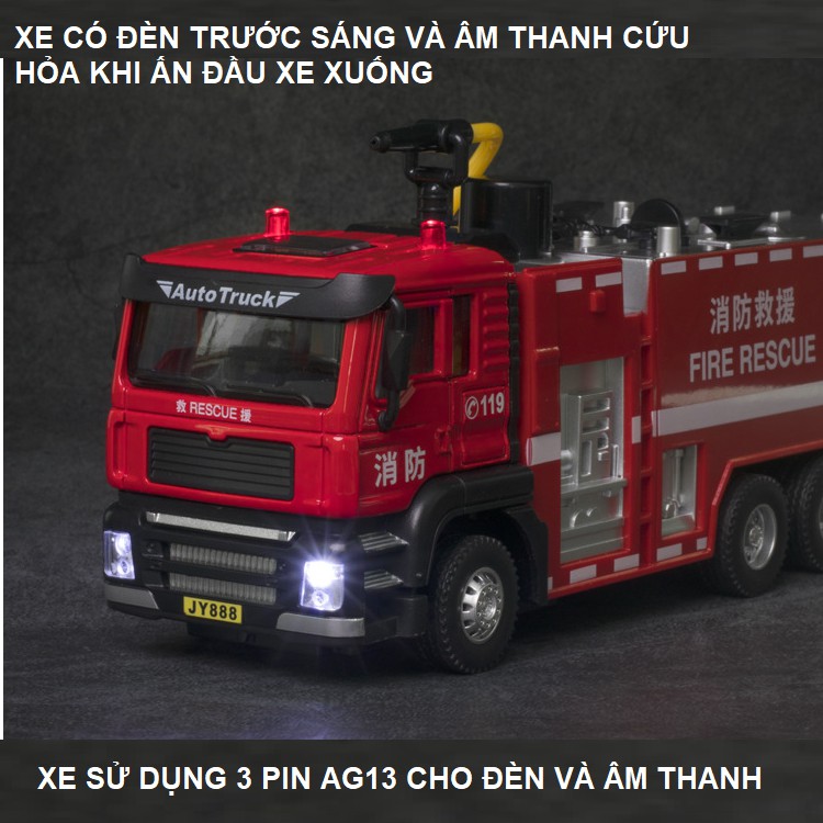Xe cứu hỏa phun được nước có âm thanh và đèn nháy xe đồ chơi trẻ em xe có cabin bằng kim loại tỉ lệ 1:50