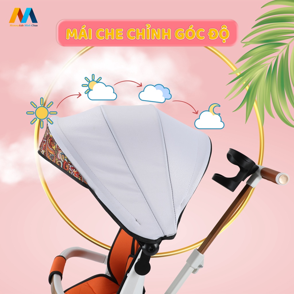 Xe Đẩy Mommykids Minh Chau , gấp gọn đảo chiều Ghế xoay 360 độ, tùy chỉnh nhiều độ nghiêng khác nhau