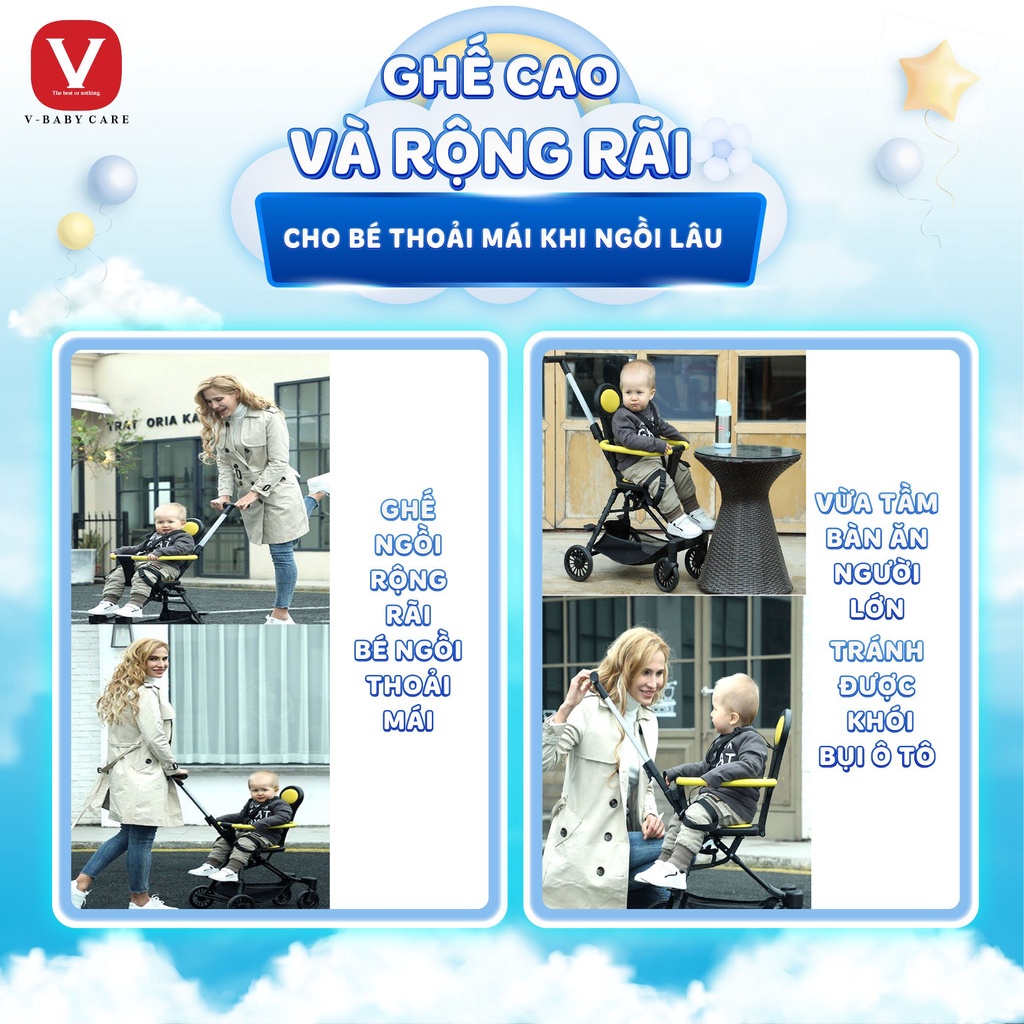 Xe Đẩy Cho Bé Gấp Siêu Gọn Đảo Chiều Tiện Lợi V-BABY Q2