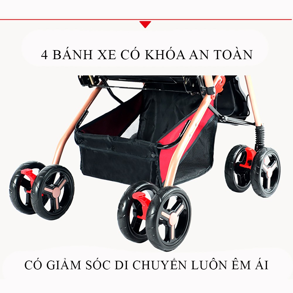 Xe nôi đẩy em bé 2 chiều cao cấp có giảm sóc - xe đẩy cho bé