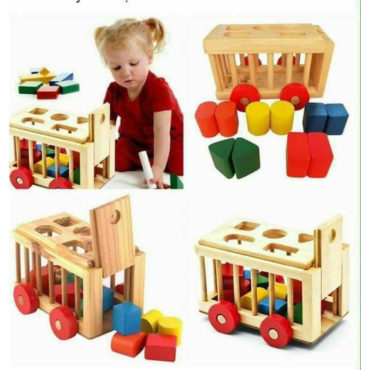 Xe Cũi Thả Hình Khối- Ô Tô Thả Hình- Đồ Chơi Phát Triển Tư Duy Cho Trẻ