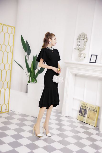 XIÊU MẪU THỜI TRANG Đầm body đuôi cá 2 tầng kết cườm cổ siêu hot : RẺ VÔ ĐỊCH