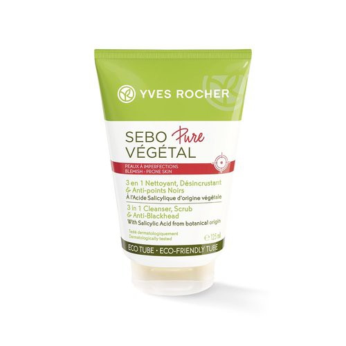 Yves Rocher Pure Menthe Gel rửa mặt cho Dầu, Mụn - Sebo Pure Vegetal 3 in 1, 125ML