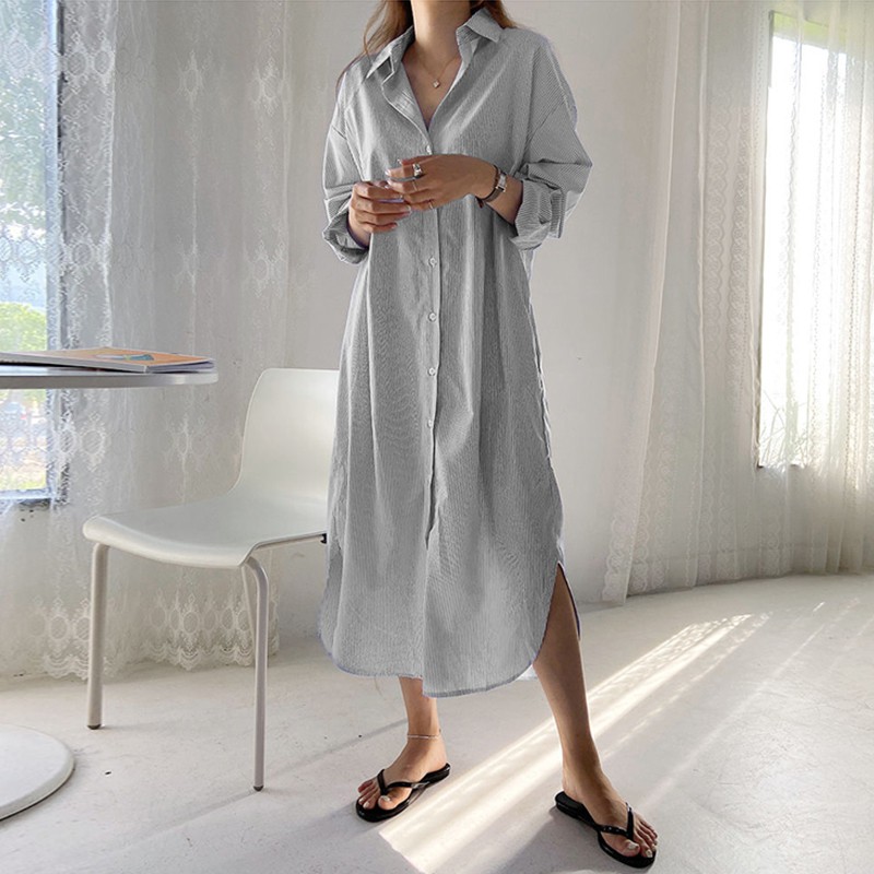 ZANZEA Đầm Tay Dài Dáng Rộng Họa Tiết Sọc Thời Trang Nữ Dễ Thương
